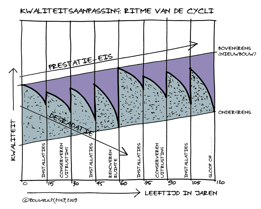 Afbeelding 2: De cycli van ‘natuurlijke’ momenten wanneer men na denkt over de (on-) mogelijkheden voor het investeren in kwaliteit van de woning.